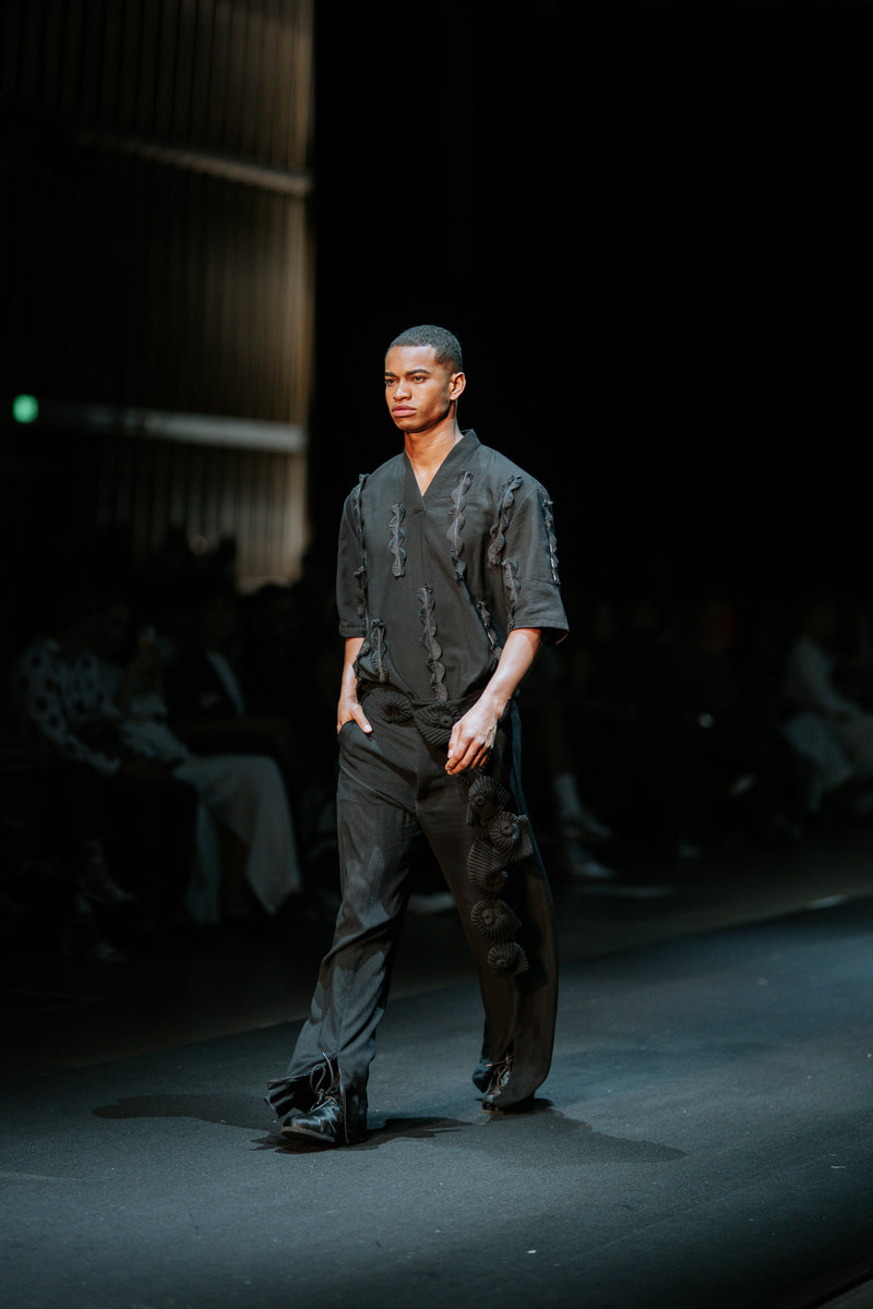 RAÍZ & RASTRO emerge como una colección no mira al pasado con nostalgia, sino con respeto. Es una invitación a leer el territorio desde el cuerpo y a usar la moda como herramienta para excavar, reinterpretar y volver a habitar lo esencial. Angel Kujaban transforma el vestuario en una arqueología emocional.