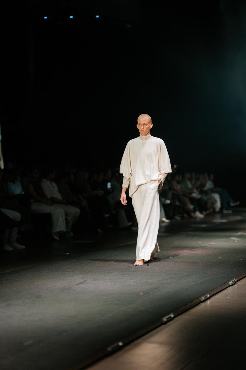 Hay platos que no necesitan ser perfectos para quedarse grabados en el alma. Hay gestos cotidianos como cocinar con corazón, coser un botón o regalar una flor que encierra todo el amor del mundo y sostiene un hogar. Inspirada en el recuerdo y en la gratitud, cada pieza rescata técnicas como el barbado rococó, con siluetas amplias, piezas de vestuario sin género que abrazan el movimiento y el presente.