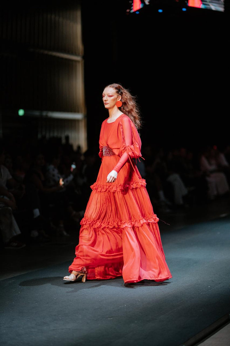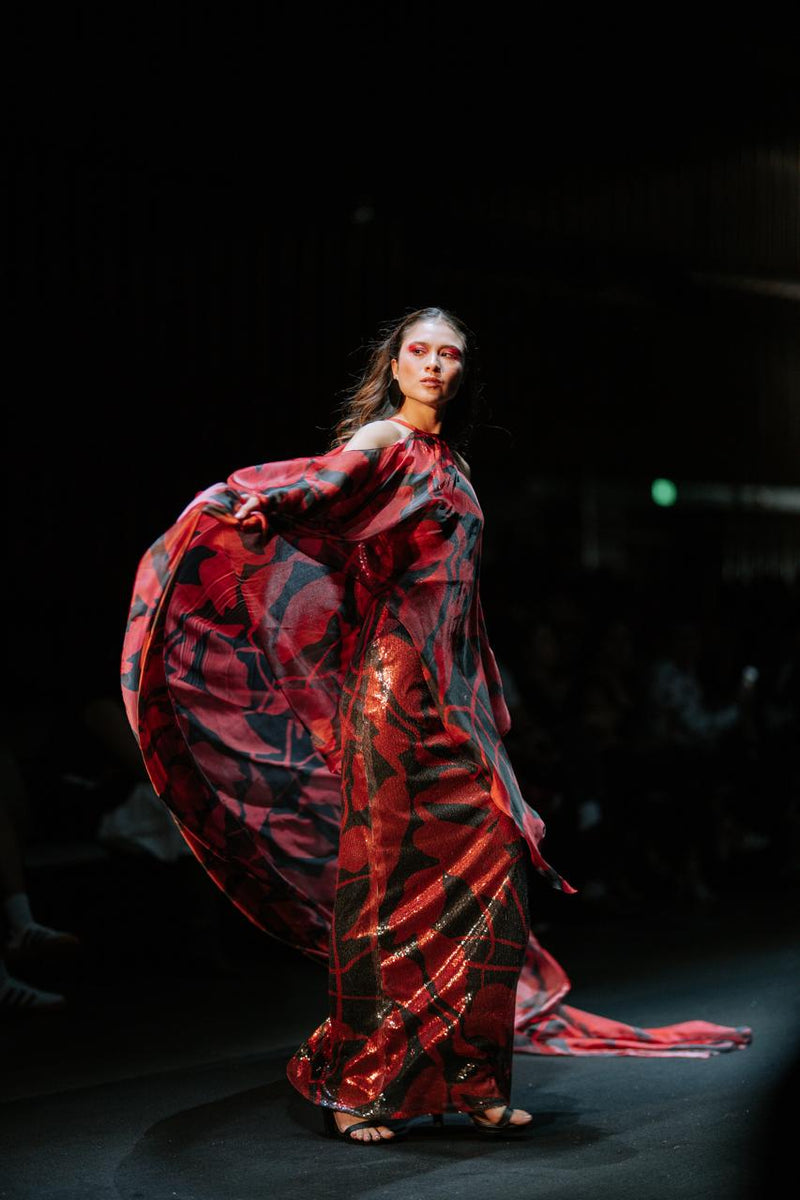 Los diseñadores exploran el volumen orgánico, la superposición y el movimiento de piezas flotantes. Las texturas fluidas, destellos metálicos y transparencias conviven para reinterpretar la feminidad contemporánea.